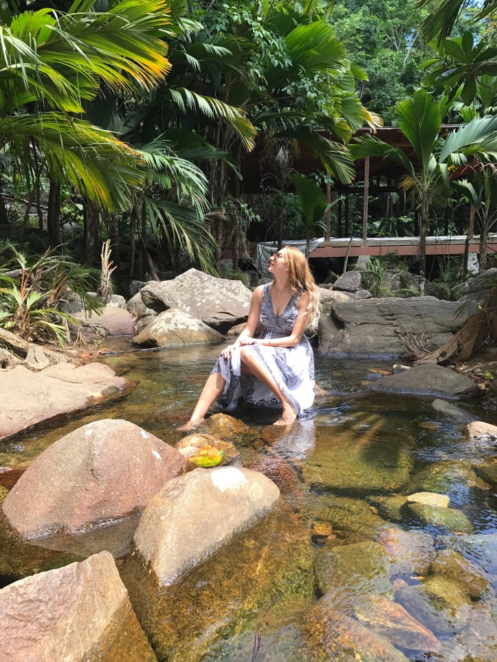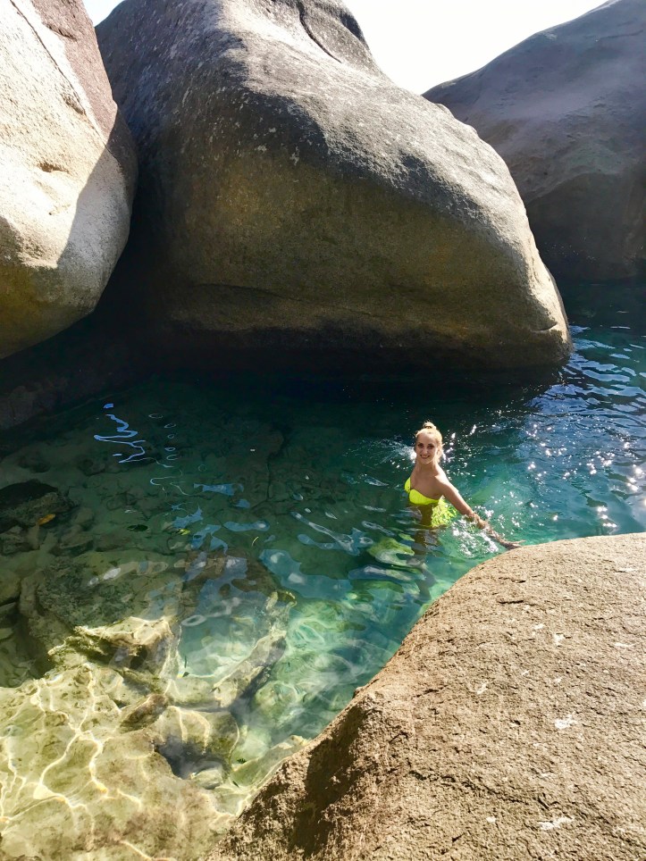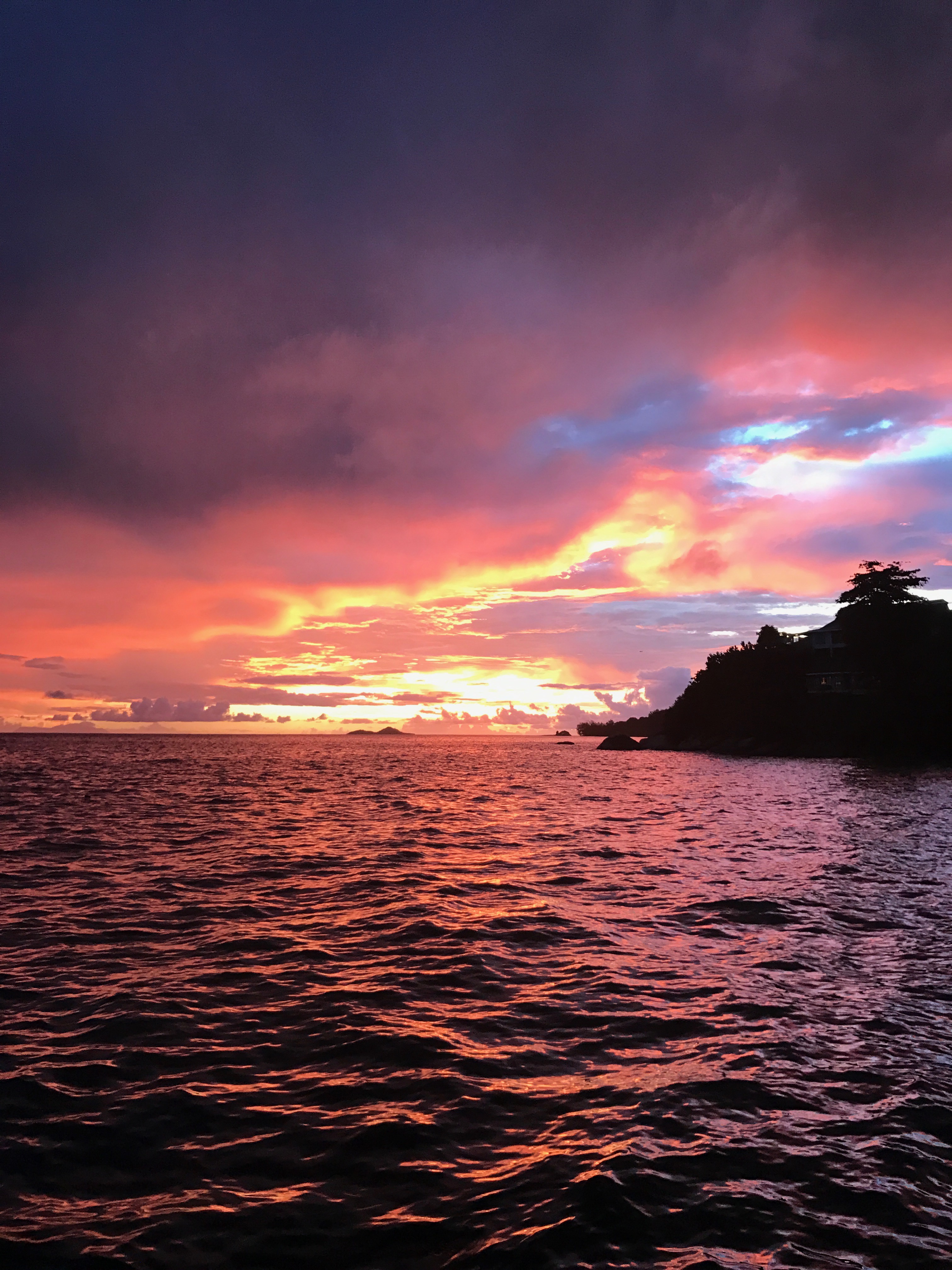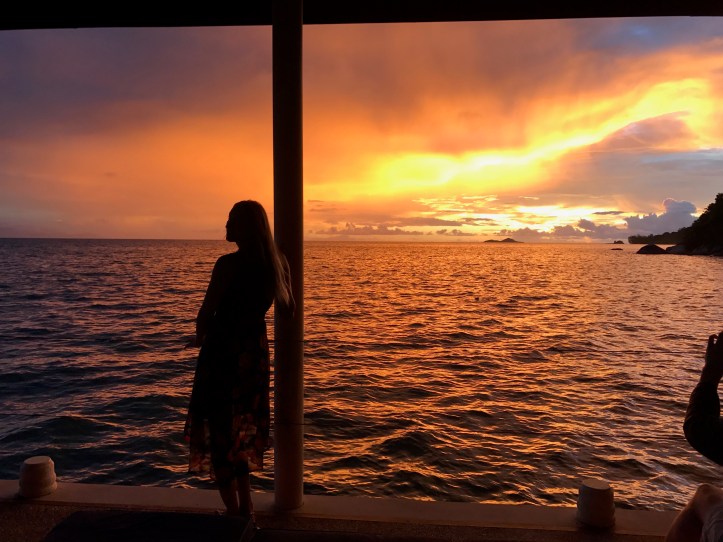 We spend the rest of the day in the natural pool of Bliss boutique hotel which is actualy a part of the sea surronded by huge stones and palms, filled with colorful fish, until the sun goes down….orange sky, noisy fruit bats circling around in search of fresh mango, a glass of wine and then…