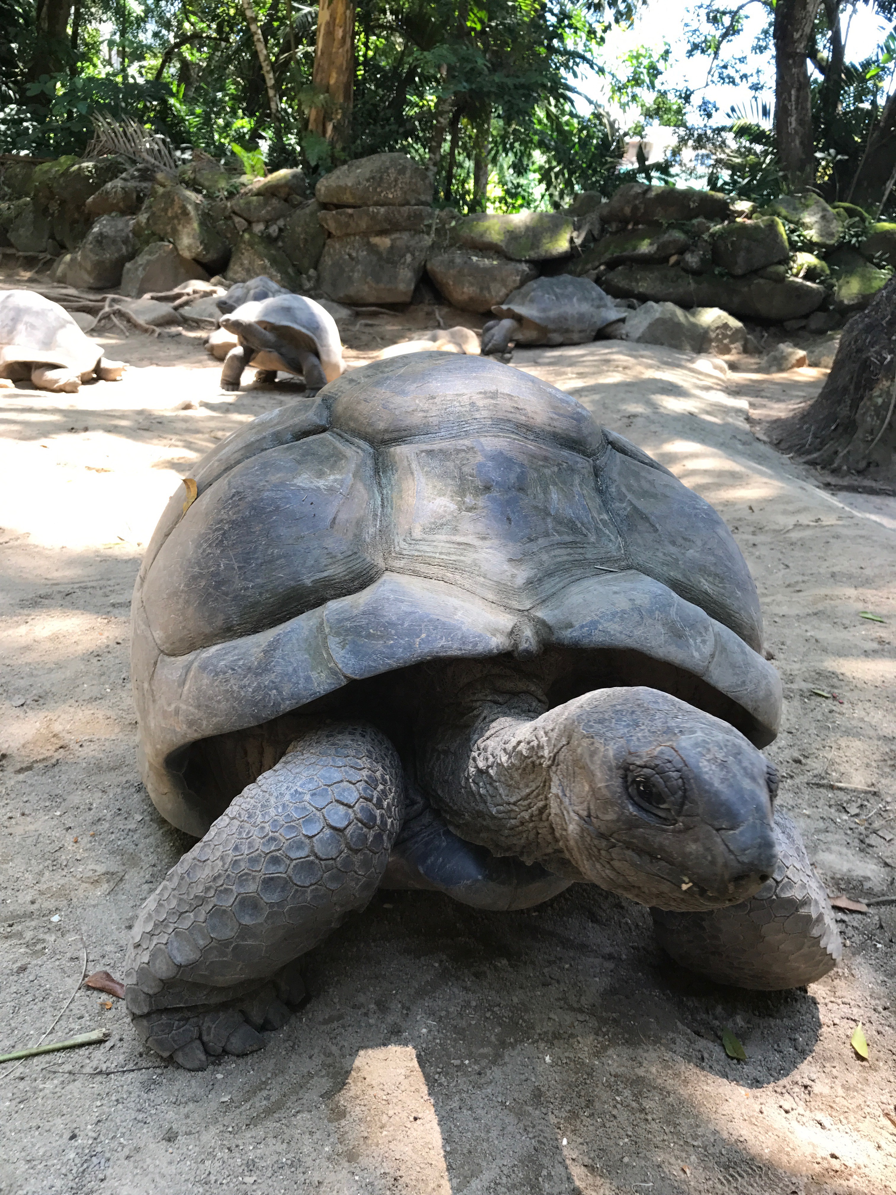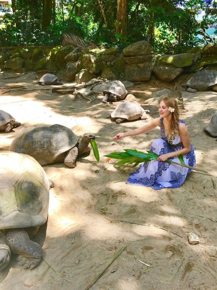 Right now I am impatient to meet the giant turtles, the beautiful creatures which populates the island of Seychelles. From September to March the female turtles drag themselves in a choosen beach where they dig a nest using their hind flippers, carefuly placing their eggs inside. Unfortunately its the end of labor season and our only chance to see the turtles is the Botanical garden.