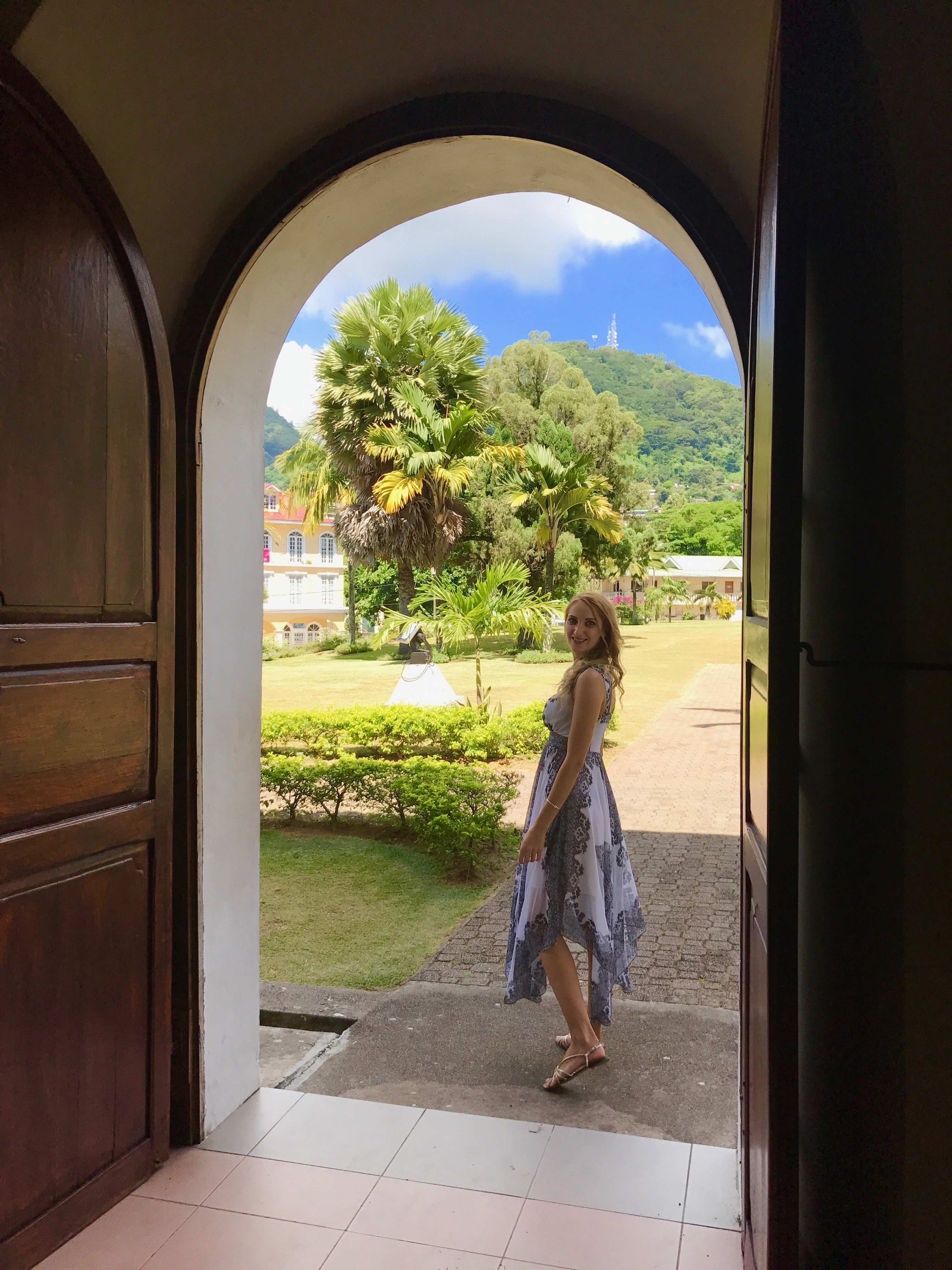 Surprisingly Seychelles is majority Catholic and our driver proudly wearing a big cross over his tshirt insist that we should also visit “The cathedral of our lady of immaculate conception”, the largest church in Seychelles. I am a little bit sceptic while Abdulla is over excited so I accept to visit the cathedral and I am not disappointed at all. While the inside impress just by its stained windows and the huge statues of biblical characters, the outside is absolutly heavenly. A big wooden door take us to a quiet, contemplative garden with a view over the Priests houses, considered to be one of the most impressive construction of the island.