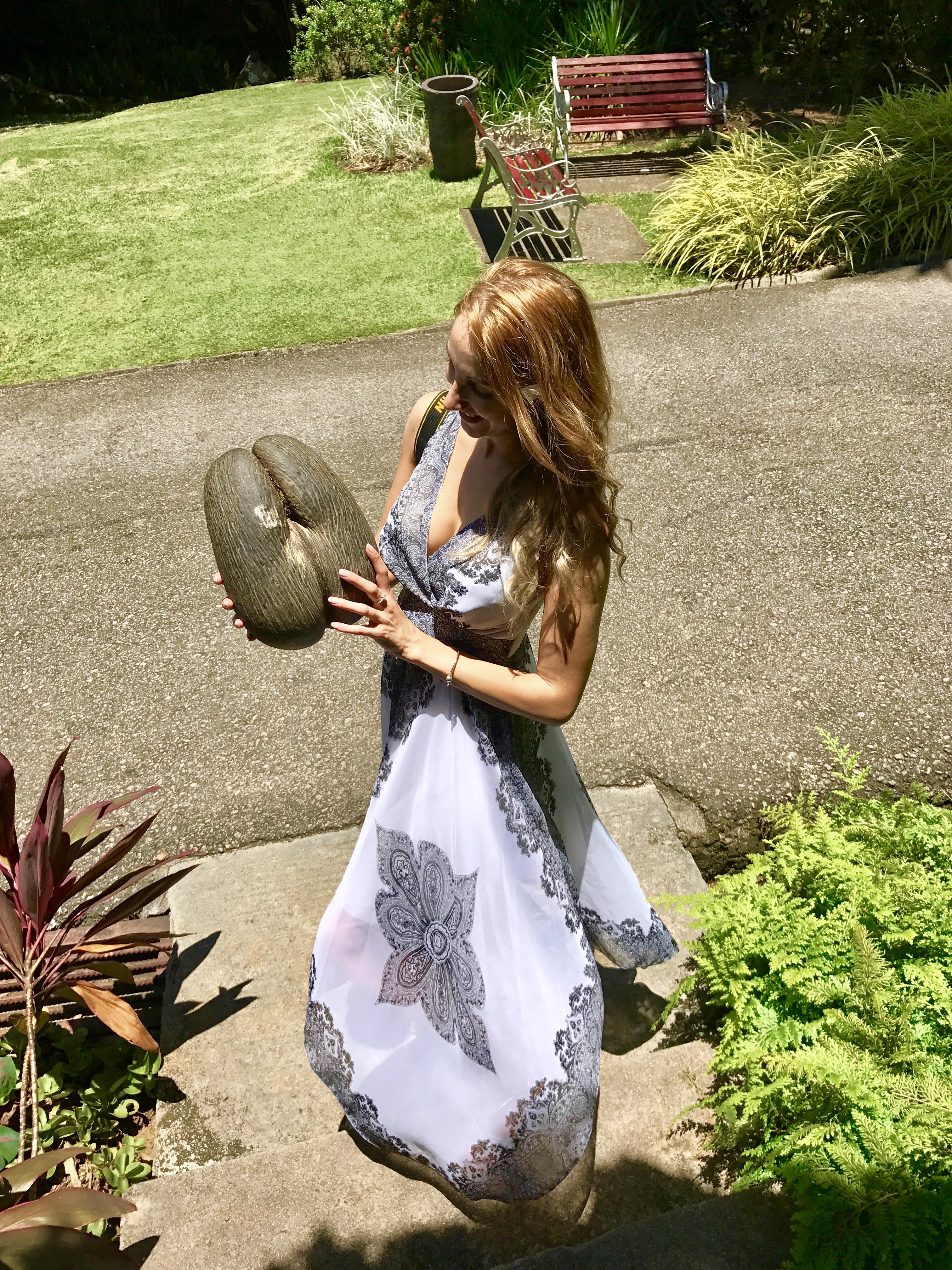 We are about to leave the Botanical garden when we almost step on an weird “coconut” which resemble more with an ugly human butt other than a delicous fruit. Coco de mer or the sexual coconut represent the natural tresure of Seychelles and the largest seed in the plant kingdom (it can reach up to 42 kg) and became highly prized over the time due to his shocking human resemblance. The naughty story of the coconut is far from being over as the female Coco de mer has an even more sexual looking partner (during its inflorescence)…the male coconut.