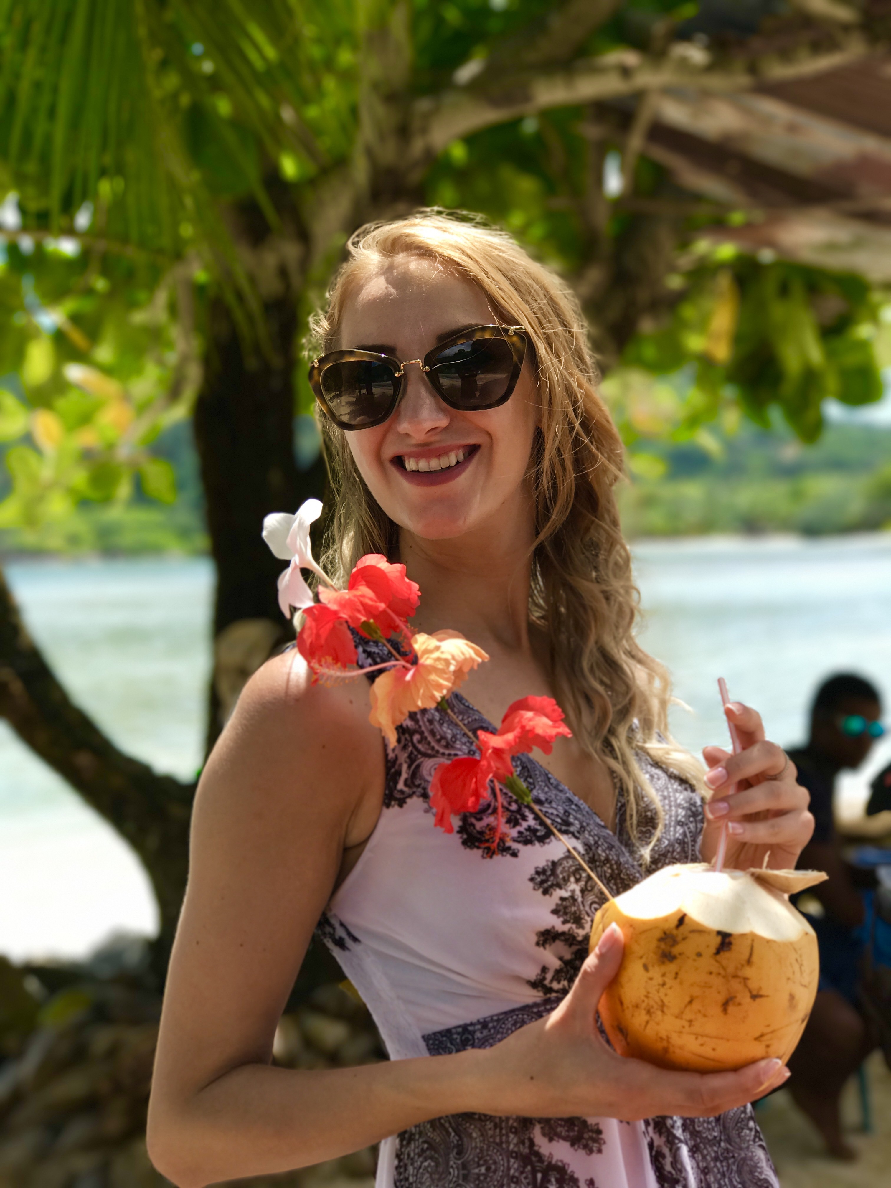 Down the road, a colorful stand of “innocent” coconut is inviting the tourists to enjoy its delicious liquor in an unforgettable scenery. A well deserved hydration break before our next stop…the waterfall.