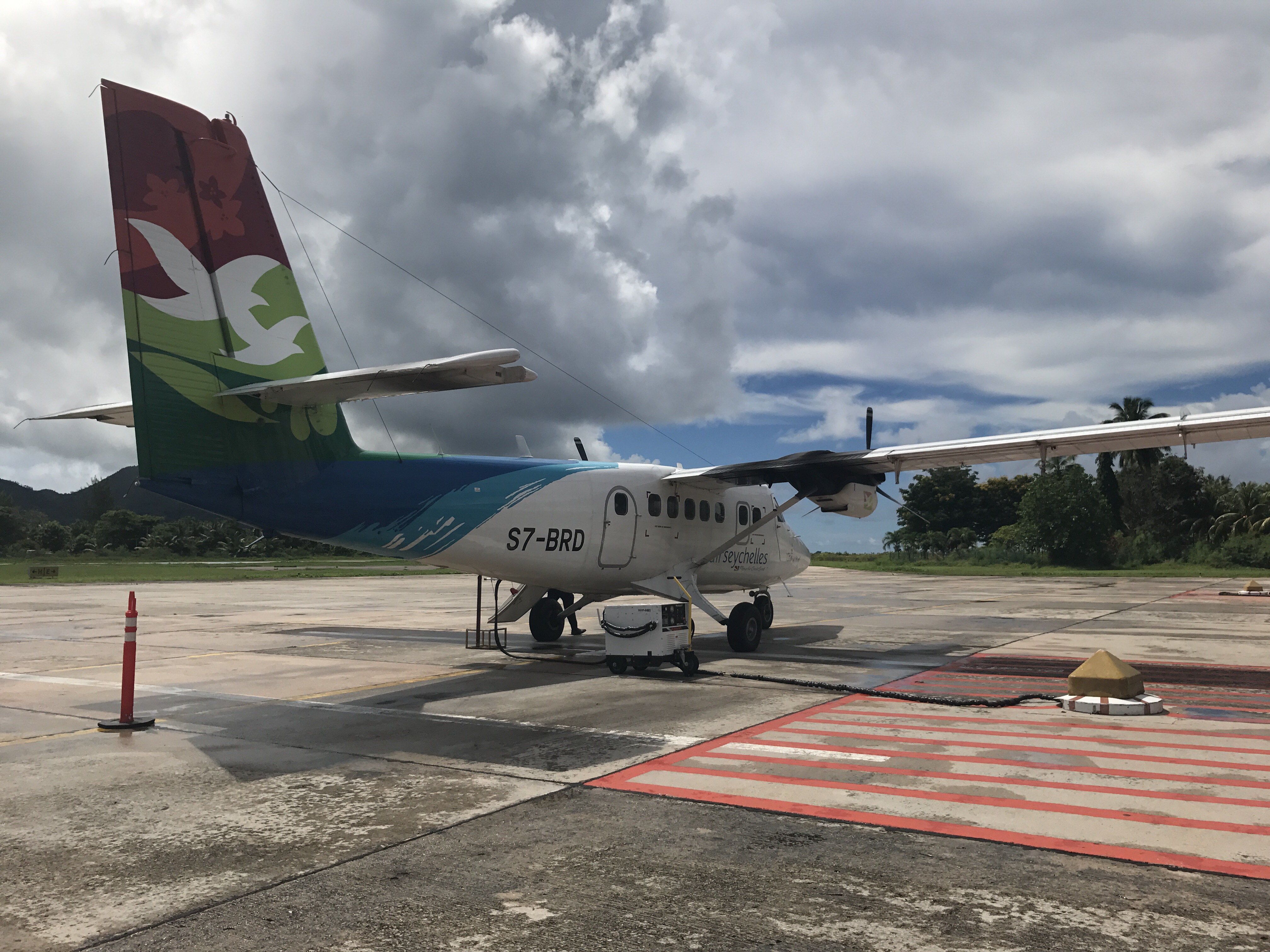 Air Seychelles is ready for boarding but we cant leave the small domestic terminal before watching the safety video, a legal requirment even for the short 10 minutes flight over the Indian ocean.