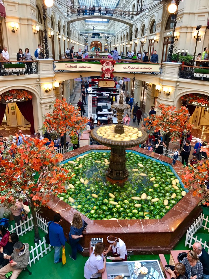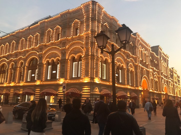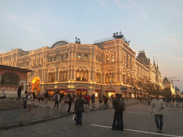 Facing the Red square is GUM department, a building with a fascinating history like everything else in Russia, built in 1893 and unique for that time due to its glass ceiling, functioning in present as a shopping mall.