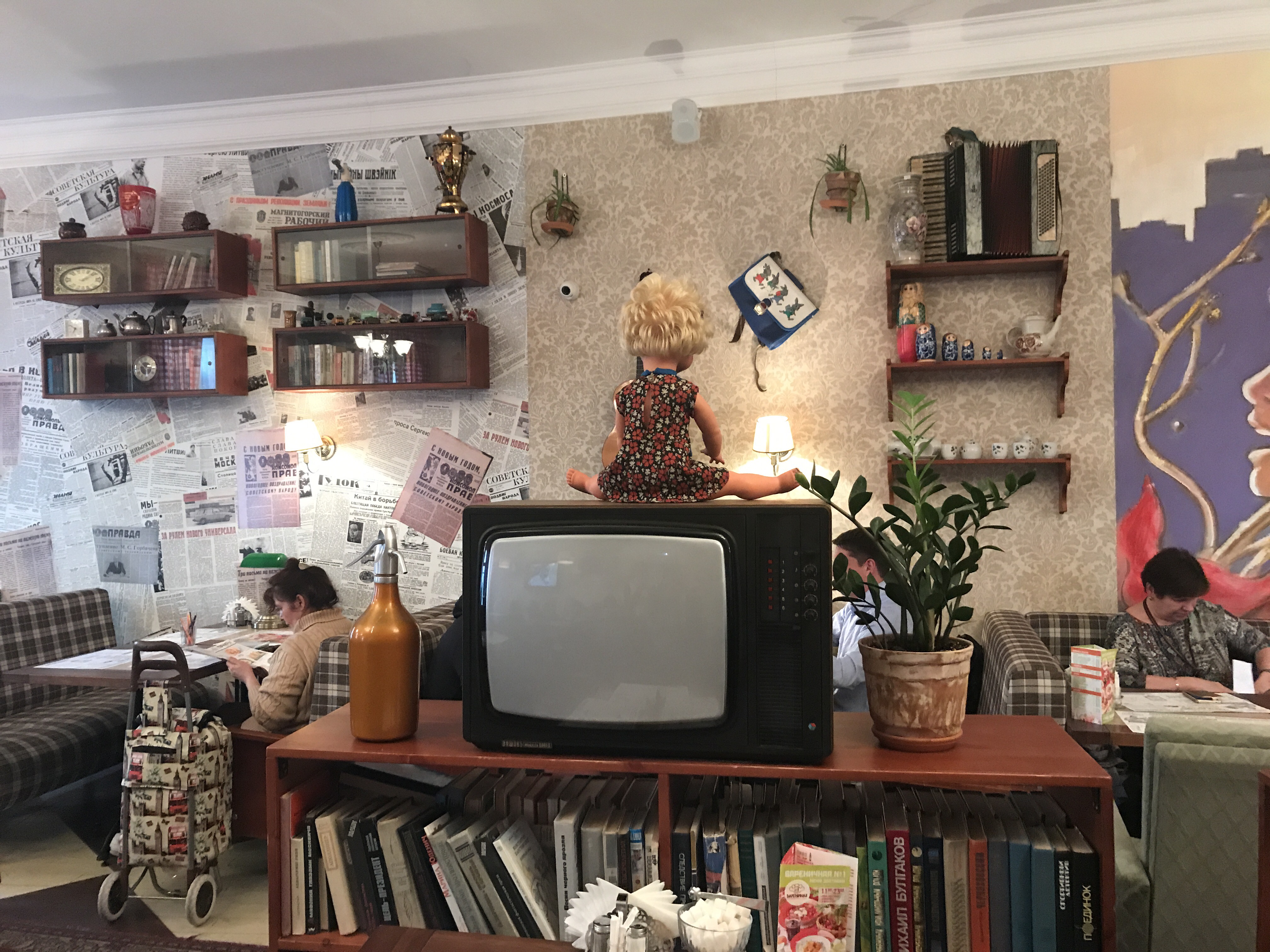 The sun is about to settle down and we decide to end up the evening with a traditional dinner in a pleasant location. Once inside, we step back into the past where everything around reminds of sweet years of childhood: vintage furniture, black and white tv, creepy dolls and the unforgettable flavors of mulled wine and grandmas food.