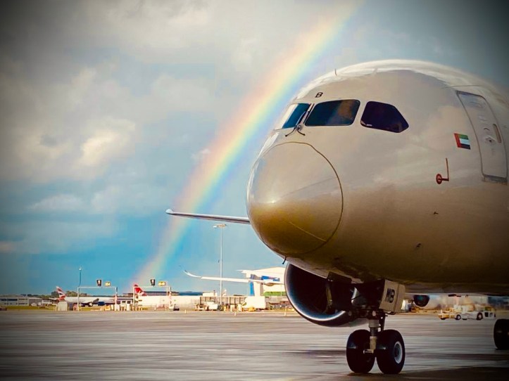 You must be lucky to land in London during a sunny day but you have to be really blessed to witness a perfect double rainbow while taxing to the gate. No filter needed, this is just a perfect shoot taken by our pilots on arrival.