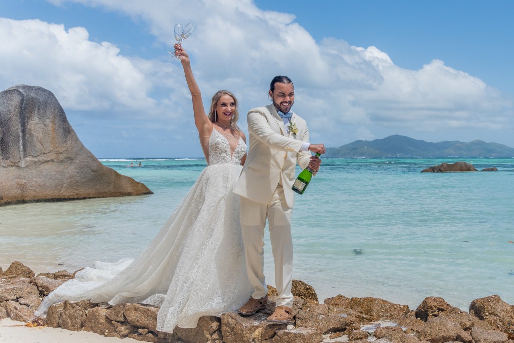 Our ceremony has taken places in a dream location, Anse Source D’argent considered one of the most beautiful place in the world and indeed the most photographed beach around the Globe.